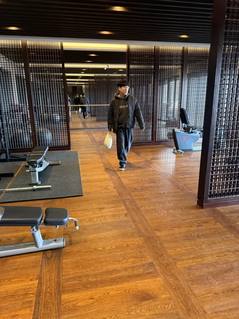 워터하우스 입구 데스크에서 투숙 호실을 말하면 팔찌형 키를 준다. 이 키로 신발장과 라커를 모두 열고 닫을 수 있다. 수영장 들어가는 길 초입에는 헬스장 입구가 따로 있는데, 여기는 상시 열려 있어 다음 날 새벽 일찍 운동하기 좋다. 단, 운동만 할 수 있고 따로 씻는 공간은 없다.