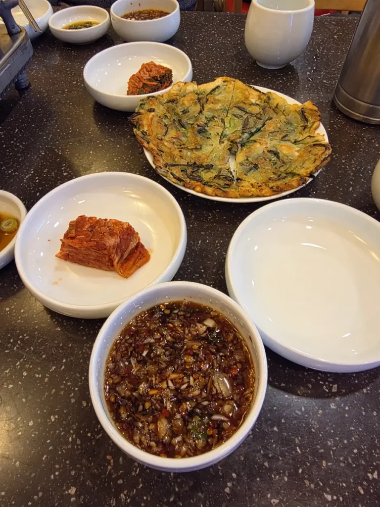 밑반찬은 김치, 양념 소스가 전부이다. 빠삭한 부추전이 기본으로 나오는데 입맛을 돋우는데 제격이다. 저 부추전은 만두국 같은 단품 식사를 하는 손님도 주는 것 같았다.
