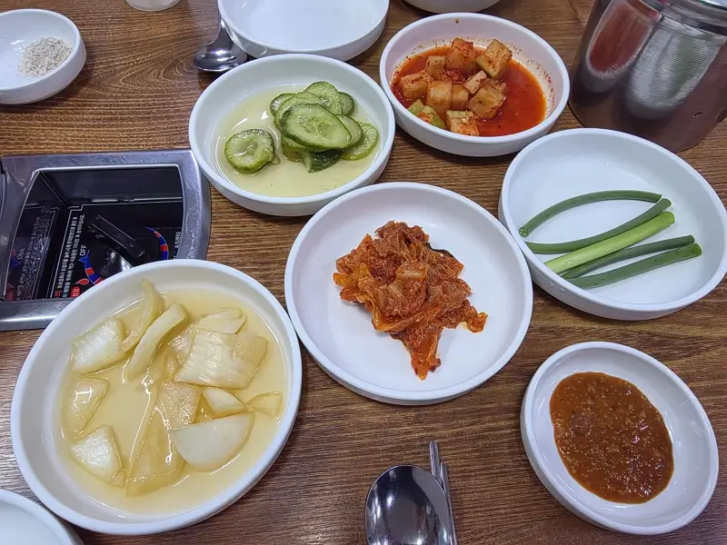 가족끼리 가면 주로 먹는것이 백숙이다. 삼계탕은 개인적으로 양이 조금 아쉬워서 백숙을 선호한다. ㅋ 기본 찬은 양파절임, 오이지, 깍두기, 볶음김치, 마늘쫑이다. 닭과 국물과 궁합이 아주 잘 맞는다.