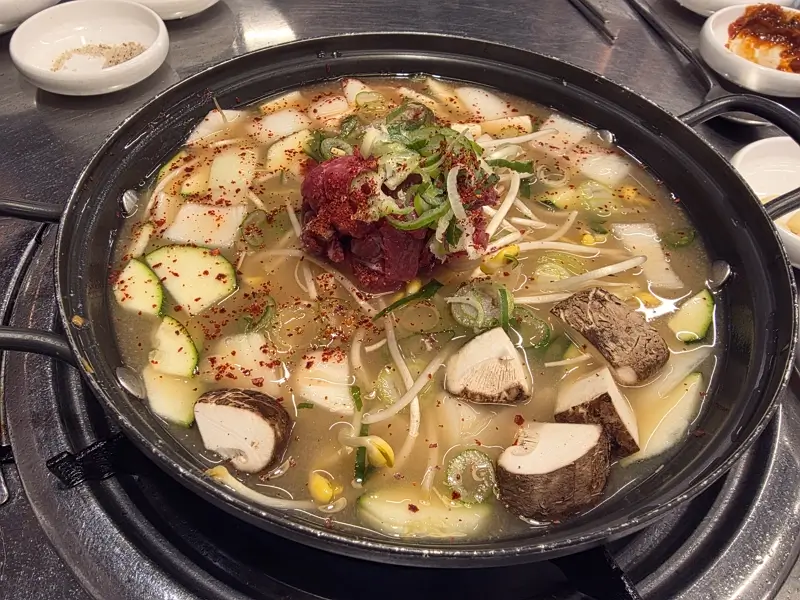 식사 메뉴로는 된장찌개와 냉면 등이 준비되어 있는데, 만약 이곳에 처음 방문한다면 나는 무조건 된장찌개를 추천하고 싶다. 이곳의 된장찌개는 주방에서 끓여서 나오는 일반적인 방식이 아니라, 테이블 위에서 직접 보글보글 끓여 먹는 시스템이라 은근히 더 깊은 맛이 난다.