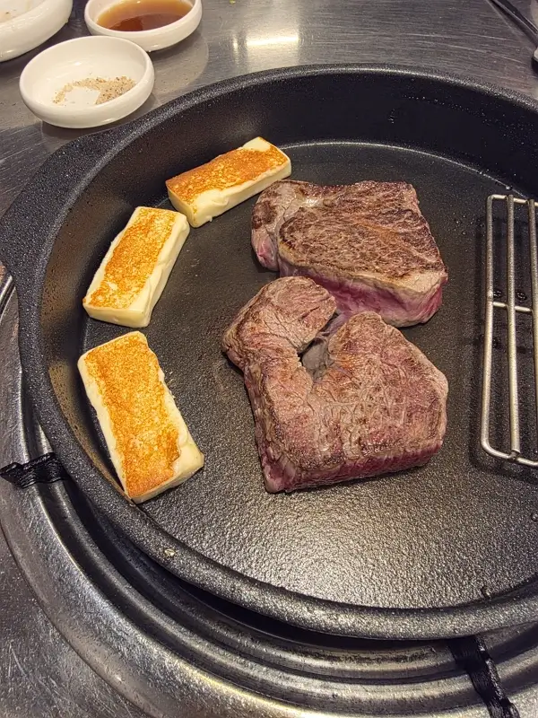 고기 상태는 상당히 훌륭한 편이라 입에서 정말 살살 녹는 느낌을 받았다. 기본 찬들이 아주 다양하게 차려지는 편은 아니지만, 고기 본연의 맛을 즐기기에는 충분하다.