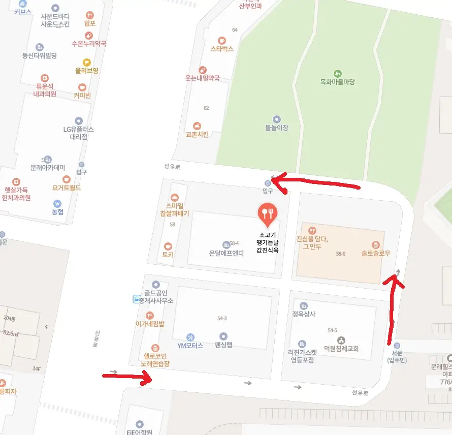 또한 주차 라인이 꽤 좁은 편이다. 만약 문콕 신경 안 쓰고 편하게 주차하고 싶다면, 길 건너 문래아카데미 같은 주변 빌딩을 이용하는 것을 추천한다. 특히 여름철에는 바로 앞 물놀이장 때문에 주변이 매우 혼잡하니 이 점도 꼭 참고하자.