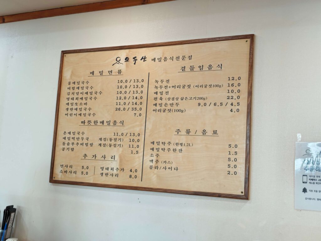 당연히 막국수가 메인이다. 2026.3월 현재 메뉴판은 다음과 같다. 국수는 일반, 곱배기로 가격이 구분되어 있다. 편육이 삼겹살이라 마음에 든다.