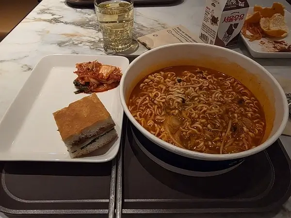 인천에서 코펜하겐으로 출발 전 대한항공 라운지도 잠시 이용을 했다. 밤 9시가 넘어 출출함을 때우기 위해 간단히 먹음. 샤워는 예약 대기가 많아 포기 ㅋ