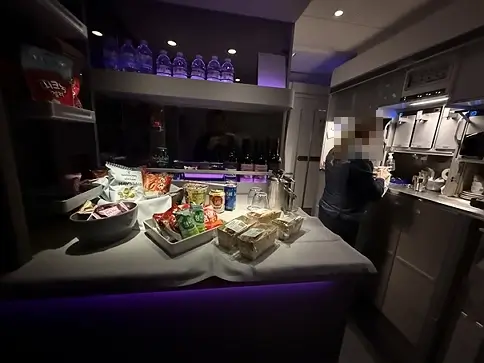 화장실은 비즈니스석이 약 40석이니 40명이 2개를 사용한다고 생각하면 될 것 같다. 식사 직후 가장 혼잡하고 착륙 1시간 전 혼잡하다. 대한항공, 아시아나의 청결함을 기대해서는 안 된다. 관리를 하긴 하나 시간이 지날수록 변기 주변이 상당히 지저분해진다.