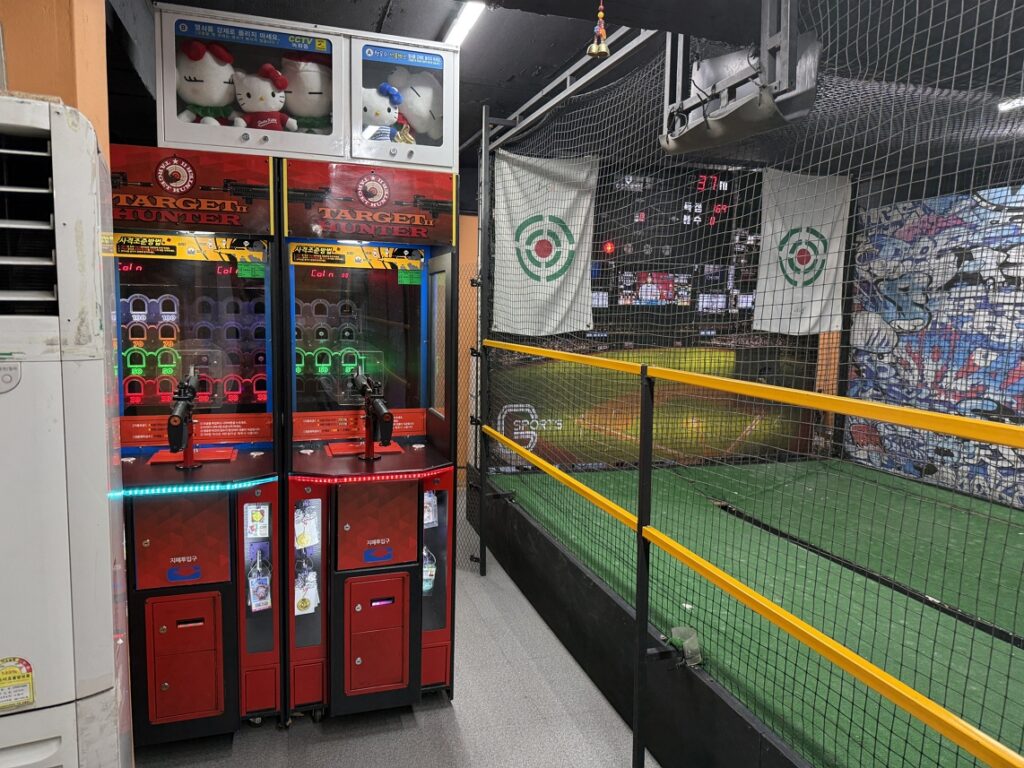 실내는 연습 타석 하나가 있고, 옆으로 농구, 사격, 두더지와 펀치 게임이 있다. 좌타자는 이용이 불가능하고 우타자만 연습이 가능하다.